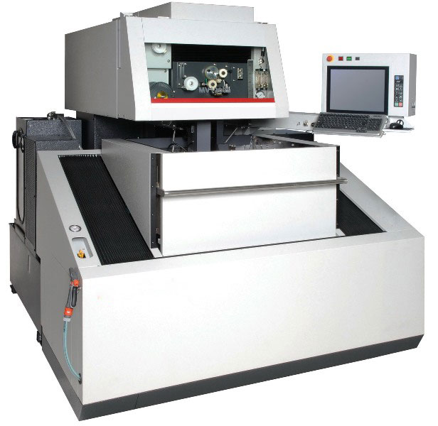 慢走絲線切割機(jī)床根據(jù)電極絲的運(yùn)行速度不同,電火花線切割機(jī)床通常分為兩類:一類是慢走絲(也叫低速走絲電火花線切割機(jī)床)電極絲作低速單向運(yùn)動(dòng),一般走絲速度低于0.2mm/s,精度達(dá)0.001mm級(jí),表面質(zhì)量也接近磨削水平。電極絲放電后不再使用,工作平穩(wěn)、均勻、抖動(dòng)小、加工質(zhì)量較好。而且采用先進(jìn)的電源技術(shù),實(shí)現(xiàn)了高速加工,較大生產(chǎn)率可達(dá)350mm2/min由于慢走絲線切割機(jī)是采取線電極連續(xù)供絲的方式,即線電極在運(yùn)動(dòng)過程中完成加工,因此即使線電極發(fā)生損耗,也能連續(xù)地予以補(bǔ)充,故能提高零件加工精度。慢走絲線切割機(jī)所加工的工件表面粗糙度通??蛇_(dá)到Ra=0.12μm及以上,且慢走絲線切割機(jī)的圓度誤差、直線誤差和尺寸誤差都較快走絲線切割機(jī)好很多,所以在加工高精度零件時(shí),慢走絲線切割機(jī)得到了廣泛應(yīng)用。